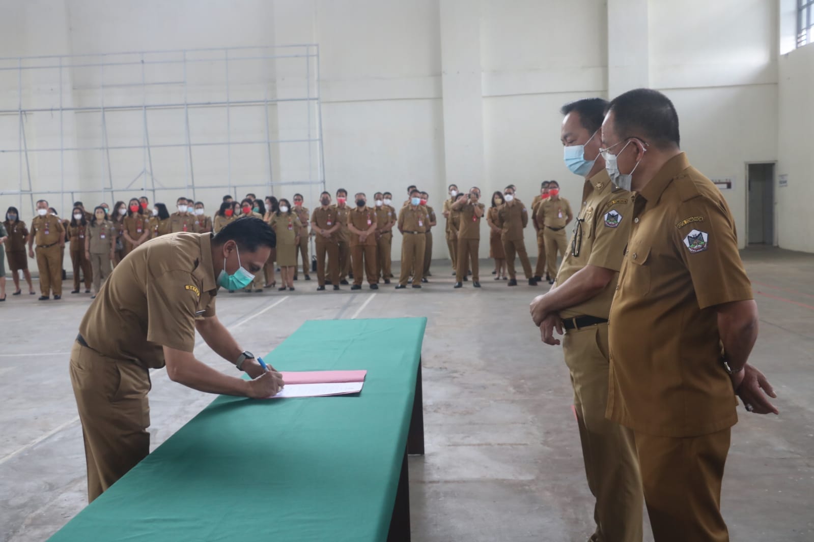 Pelayanan optimal di masa pandemi tidak lain adalah penerapan protokol kesehatan ketat, baik bagi masyarakat maupun pemberi layanan. oleh karena itu para ASN dan tenaga kontrak diharapkan untuk tetap menjadi contoh dan teladan dalam penerapan protokol kesehatan. mari kita wujudkan semangat dan motivasi baru di tahun baru dalam pelayanan publik dan kinerja pemerintah yang penuh inovasi, responsif dan produktif.