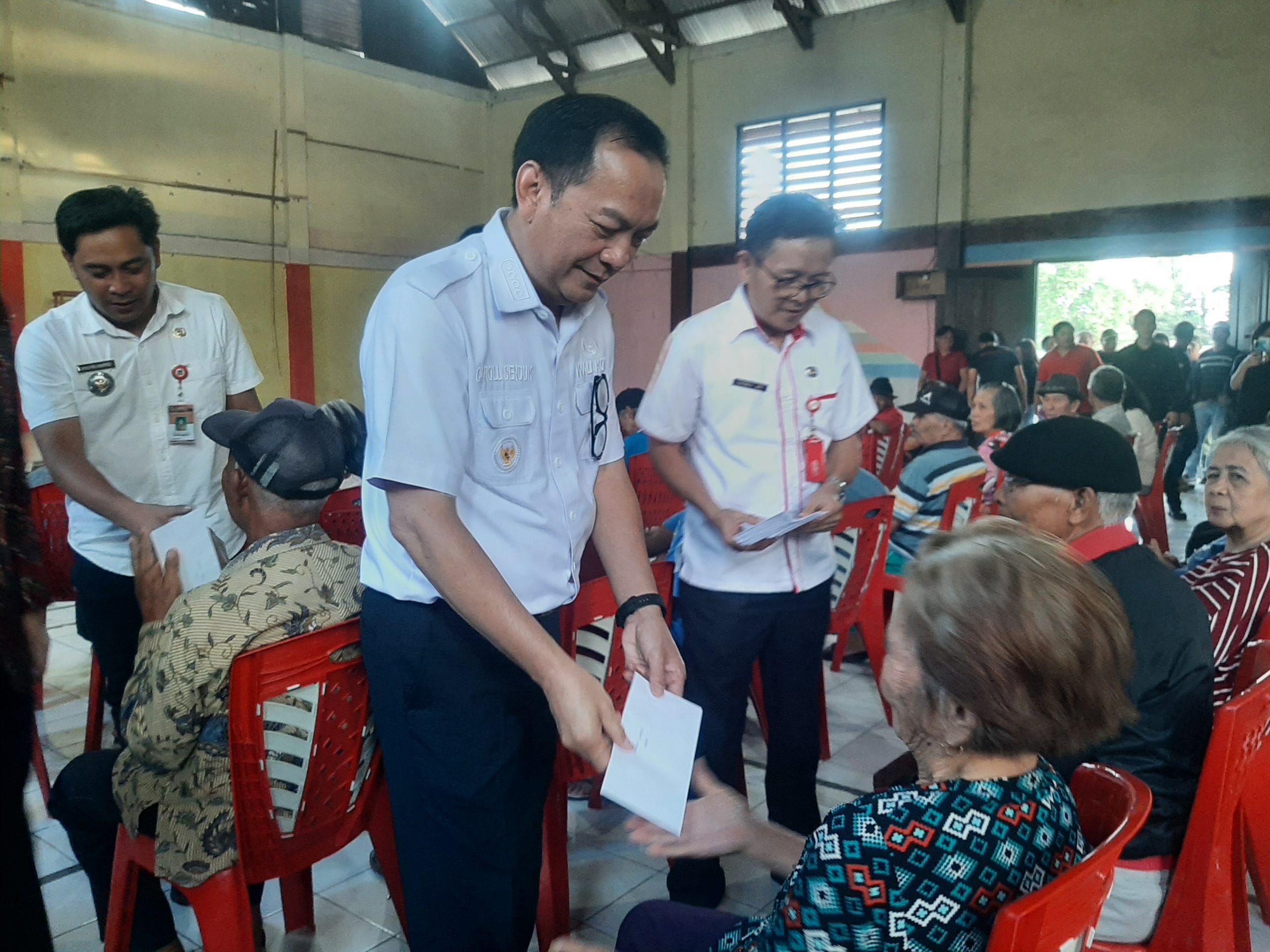 NusantaraInfo.net|| Wali Kota Tomohon Caroll J A Senduk SH menyerahkan bantuan sosial atau insentif lansia di beberapa Kelurahan yang ada di Kota Tomohon. Rabu (20/09/2023)