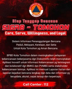 “Sistem informasi Tanggap Bencana Tomohon (SIGAB-Tomohon), merupakan aplikasi bentuk pelayanan informasi dan pelaporan dari kelurahan hingga ke tingkat kota, prov dan pusat tentang semua kejadian bencana di Tomohon, kemudian laporan cepat ini menjadi dasar asesment Kaji Cepat tim TRC-PB utk melaksanakan penanganan,” kata Supit.