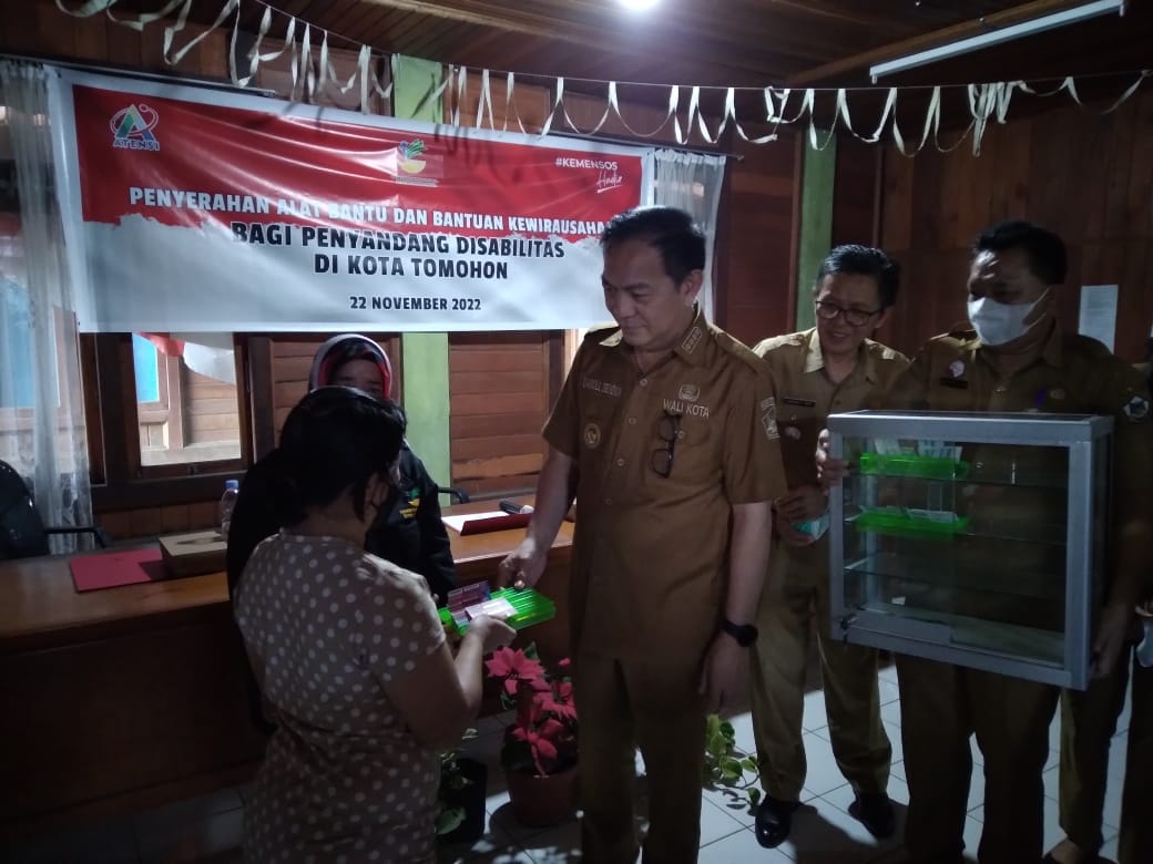 Kadis Sosial Daerah Kota Tomohon Thomly Lasut SH, mengungkapkan Jumlah penyandang disabilitas penerima bantuan yakni 13 orang menerima kursi roda dengan tipe 3 in 1 dan kursi roda standard, dan 22 orang menerima bantuan bentuk kewirausahaan seperti peralatan untuk usaha warung makan, peralatan tukang kayu, ayam dan pakan ternak, isi warung sembako, usaha jual pulsa, bahan produksi usaha hollow brik, peralatan untuk toko onderdil.