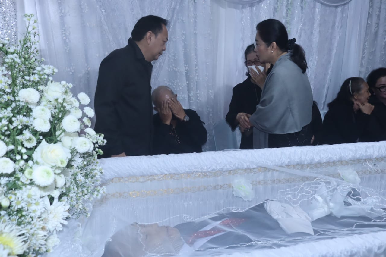 Nusantarainfo.net – Walikota Tomohon, Caroll J.A. Senduk, SH, didampingi oleh Ketua TP-PKK Kota Tomohon, drg. Jeand’arc Senduk-Karundeng, melayat ke rumah duka keluarga Mandagi-Pontoh atas meninggalnya Pdt. Timmy Mandagi, M.Th di Kakaskasen Tiga, Kecamatan Tomohon Utara. Kamis, 10 April 2025.