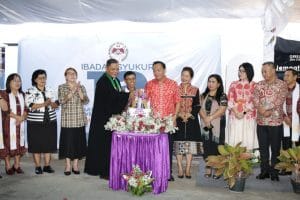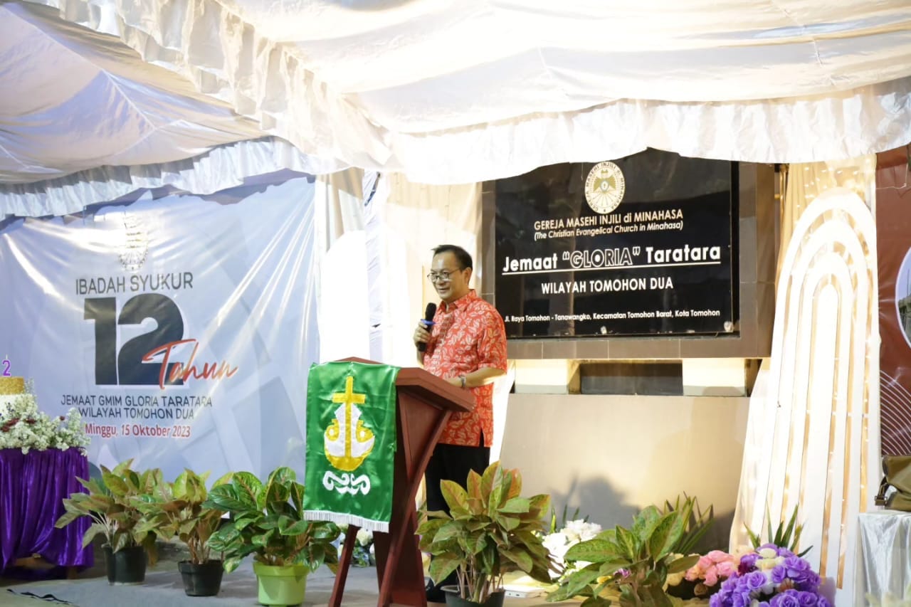 NusantaraInfo.net|| Wali Kota Tomohon Caroll J A Senduk SH, manghadiri Ibadah syukur Hari Ulang Tahun ke-12 Jemaat GMIM Gloria Taratara Wilayah Tomohon dua. Minggu (15/10), di kompleks depan gedung gereja. Khadim dalam ibadah tersebut, Pdt Dr Hendry Runtuwene STh MSi.