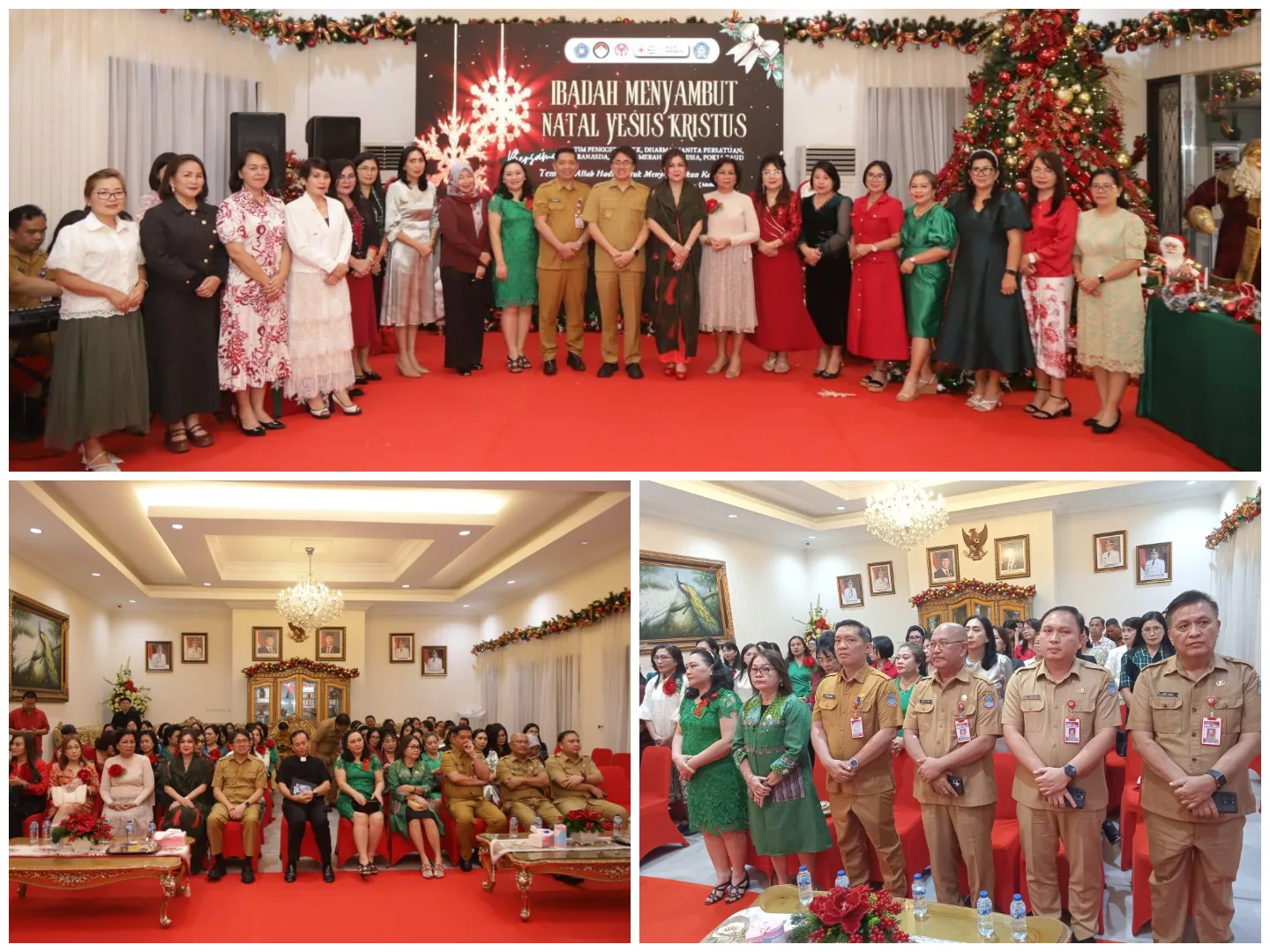 Ibadah Natal yang berlangsung khidmat tersebut turut dihadiri Ketua Tim Penggerak PKK Kota Manado Ibu Iren Angouw Pinontoan, Ketua DPRD Kota Manado Dra. Aaltje Dondokambey, M.Kes., Apt., anggota DPRD Kota Manado, Sekretaris Kota Manado dr. Steaven Dandel, M.Ph., jajaran pengurus PKK Kota Manado, pengurus PMI, Pokja PAUD, Dekranasda Kota Manado, Ketua dan Pengurus Dharma Wanita Persatuan Kota Manado, para kepala SKPD, serta undangan lainnya.