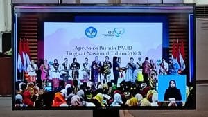 Advetorial|| NusantaraInfo.net|| Ketua TP-PKK Kota Tomohon drg JeandArc Senduk Karundeng selaku Bunda PAUD Kota Tomohon menerima penghargaan dalam puncak acara Apresiasi Bunda PAUD Tingkat Nasional Tahun 2023 yang digelar di Mercure Convention Centre Ancol Jakarta, Rabu 8/11/2023