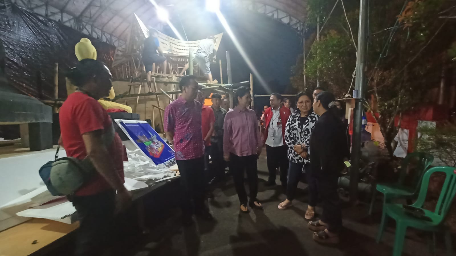 NusantaraInfo.net|| Wali Kota Tomohon Caroll JA Senduk, SH, bersama Ketua TP PKK drg. Jeand’arc Senduk Karundeng, Sekretaris Kota Edwin Roring, SE.ME, Wakil Ketua Panitia Vonny Pangemanan mendampingi Ketua Umum Panitia TIFF 2023 Ibu Rita Tamuntuan meninjau dan mengecek kesiapan hanggar kendaraan hias yang akan mengikuti Tournament of Flower (ToF). Rabu (09/08/2023)