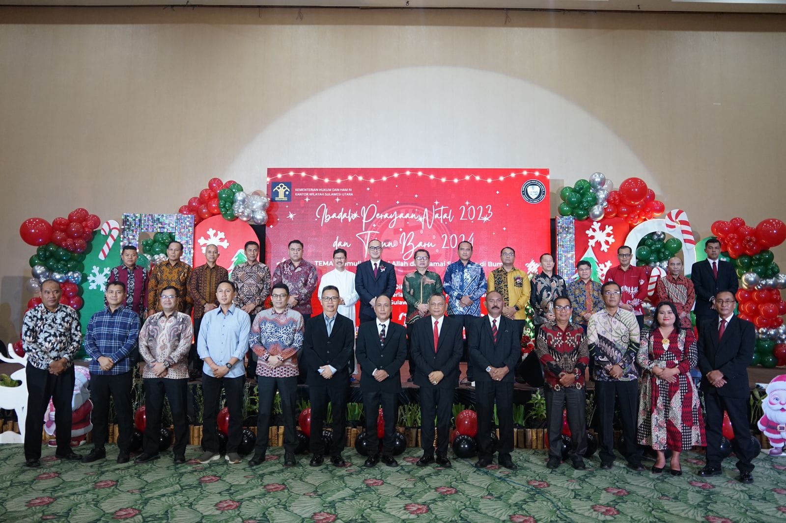 NusantaraInfo.net|| Plt. Kepala Lembaga Pemasyarakatan Perempuan Kelas IIB Manado, Lidya Awoah hadir secara langsung dalam perayaan Natal Tahun 2023 dan Tahun Baru 2024 Jajaran Kanwil Kemenkumham Sulut, yang dilaksanakan secara hybrid terpusat di Sintesa Peninsula Hotel Manado. Jumat (05/01).