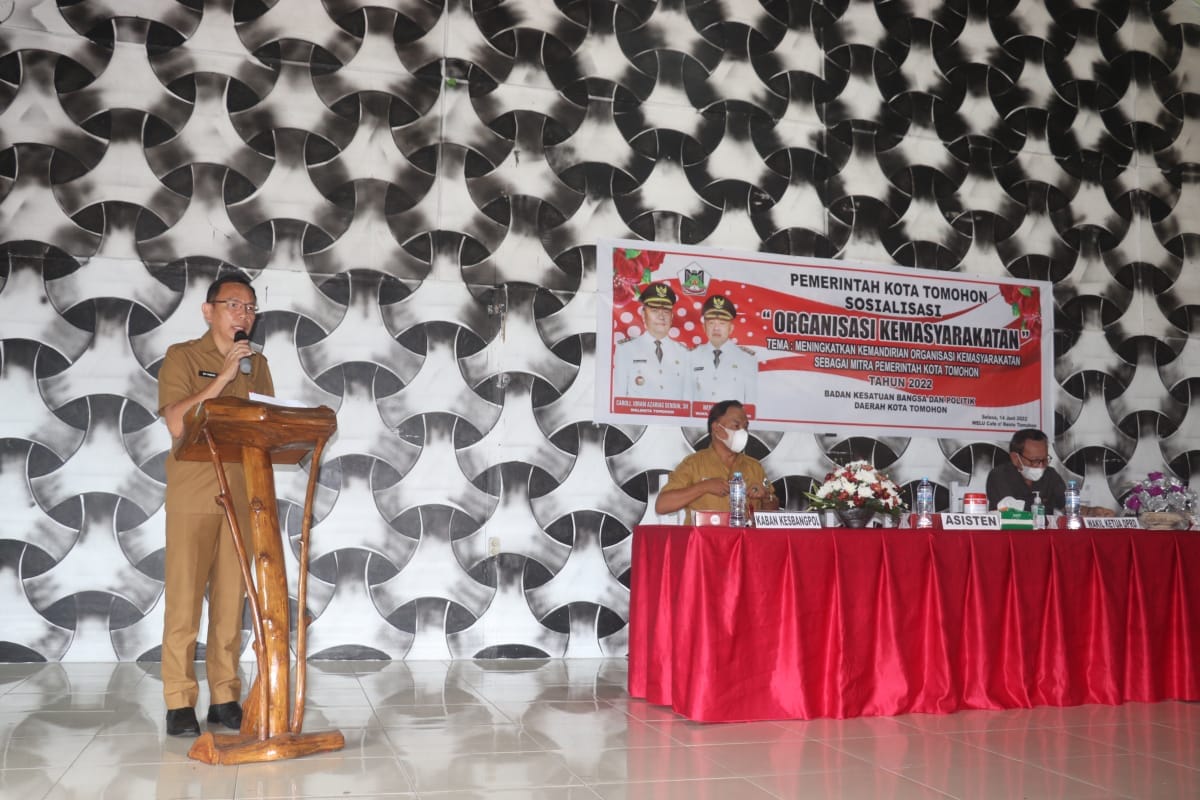 Sambutan Walikota Tomohon yang dibacakan oleh Asisten 3 mengatakan. Eksistensi keberadaan Ormas sebagai wadah berserikat dan berkumpul adalah perwujudan kesadaran dan tanggung jawab kolektif warga Negara untuk berpartisipasi dalam pembangunan. Ormas merupakan potensi masyarakat secara kolektif, yang harus dikelola sehingga tetap menjadi energi positif dalam kehidupan bermasyarakat, berbangsa dan bernegara. Untuk itu, Negara berkewajiban mengakui keberadaannya, dan menjamin keberlangsungan hidup Ormas.