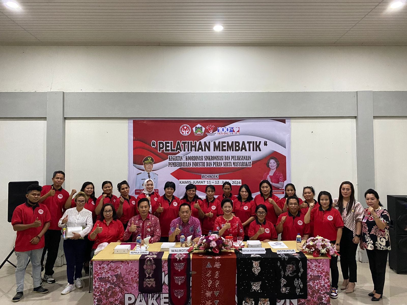 NusantaraInfo.net|| Wali Kota Tomohon Carrol J.A Senduk didampingi Ketua Dekranasda Drg.Jeand’Arc Senduk-Karundeng, menghadiri Kegiatan Koordinasi Sinkronisasi dan Pelaksanaan Pemberdayaan Industri dan Peran Serta Masyarakat ( Pelatihan Membatik). Kamis (11/07), di Michi No Eki Pakewa Tomohon.