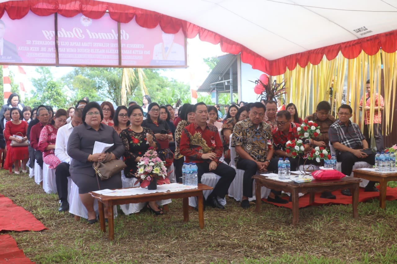 NusantaraInfo.net|| Wali Kota Tomohon Caroll Senduk SH, dan Ketua TP-PKK Ibu drg. Jeand’arc Senduk-Karundeng, mendampingi Gubernur Sulawesi Utara Olly Dondokambey, S.E, dalam Ibadah Peletakan Batu Pertama Pembangunan Gedung Gereja GMIM Rut di Woloan Satu. Minggu (04/06), ibadah dipimpin oleh Ketua Badan Pekerja Majelis Sinode GMIM Pdt. Hein Arina, Th.D.