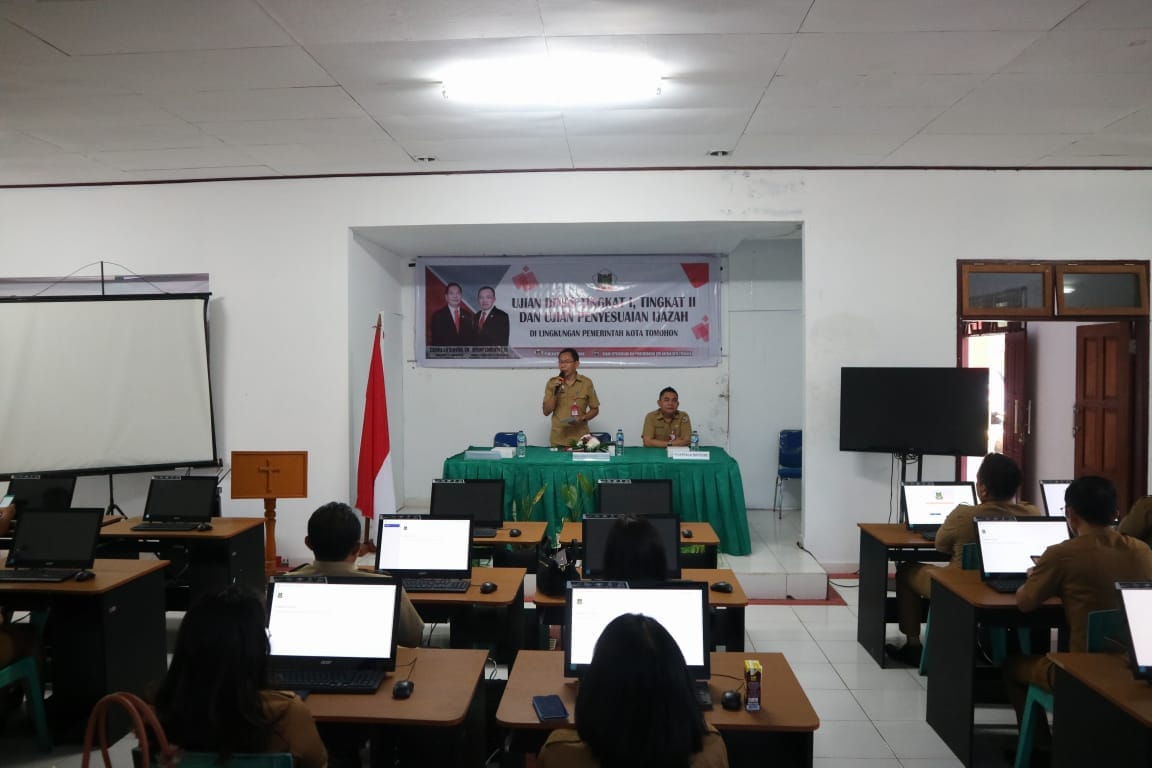 Tampak hadir Kepala Badan Kepegawaian dan Pengembangan SDM Daerah Kota Tomohon Albert J Tulus dan para peserta Ujian.