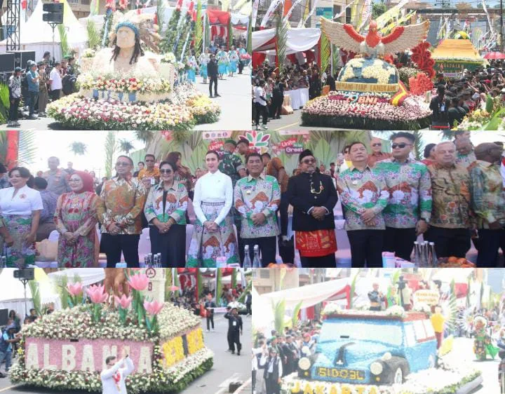 Parade ini juga melibatkan perwakilan dari berbagai daerah di Sulawesi Utara, sektor perbankan, perusahaan swasta, lembaga nasional, hingga kolaborasi dengan fashion carnival, kelompok drum band, dan beragam atraksi.