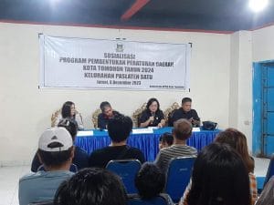NusantaraInfo.net|| ADVETORIAL|| Sekretariat DPRD menyelenggarakan Sosialisasi Program Pembentukan Peraturan Daerah Kota Tomohon Tahun 2024 di Kelurahan Lansot, Tumatangtang dan Walian, Jumat 8 Desember 2023, menghadirkan narasumber Ketua DPRD Kota Tomohon, Bapak Djemmy J. Sundah, S.E.