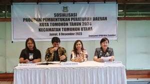 Sekretariat DPRD menyelenggarakan Sosialisasi Program Pembentukan Peraturan Daerah Kota Tomohon Tahun 2024 di kecamatan Tomohon Utara, Jumat, 8 Desember 2023, menghadirkan narasumber yakni, anggota DPRD Kota Tomohon Ibu Jenny Sompotan dan anggota DPRD Kota Tomohon Bpk. Stanly Wuwung ST.