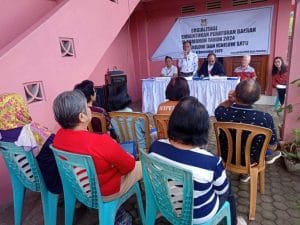 Sekretariat DPRD menyelenggarakan Sosialisasi Program Pembentukan Peraturan Daerah Kota Tomohon Tahun 2024 di Kelurahan Kolongan, Jumat 8 Desember 2023, menghadirkan narasumber yakni Anggota DPRD Kota Tomohon, Donald Pondaag, dan Kabag Hukum Setda, Berny Mambu, SH, MH.
