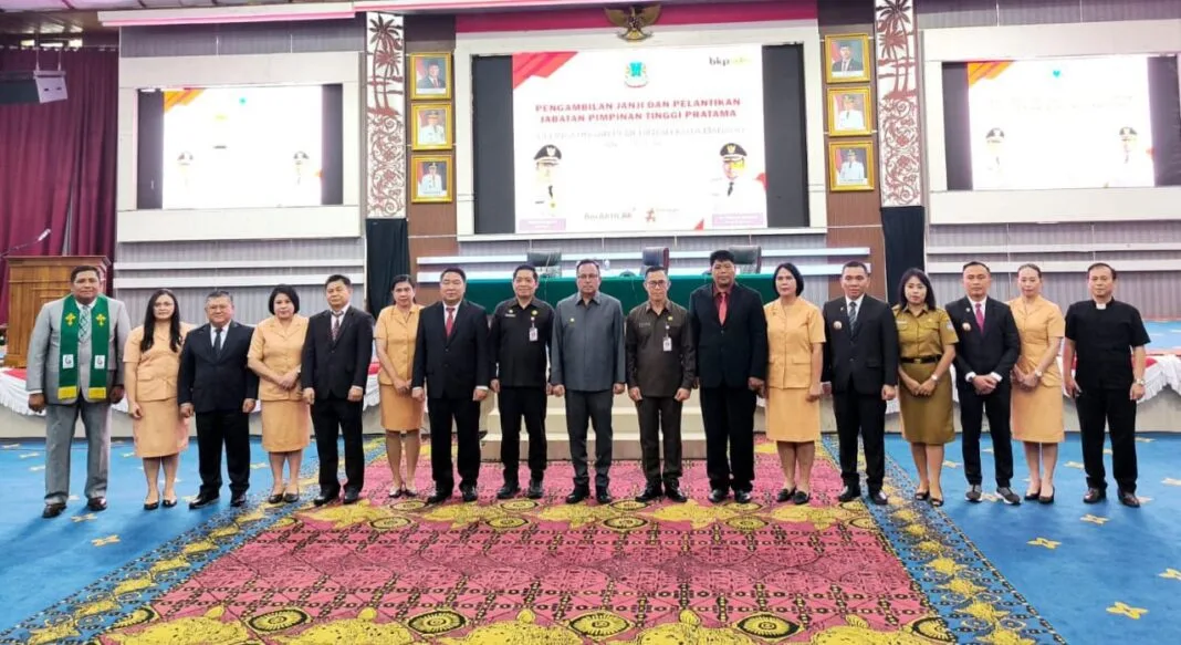 Manado, nusantarainfo.net – Suasana khidmat menyelimuti ruang serbaguna Kantor Pemerintah Kota Manado, Senin (25/8/2025), saat dilangsungkannya pengambilan janji dan pelantikan pejabat pimpinan tinggi pratama di lingkungan Pemkot Manado.