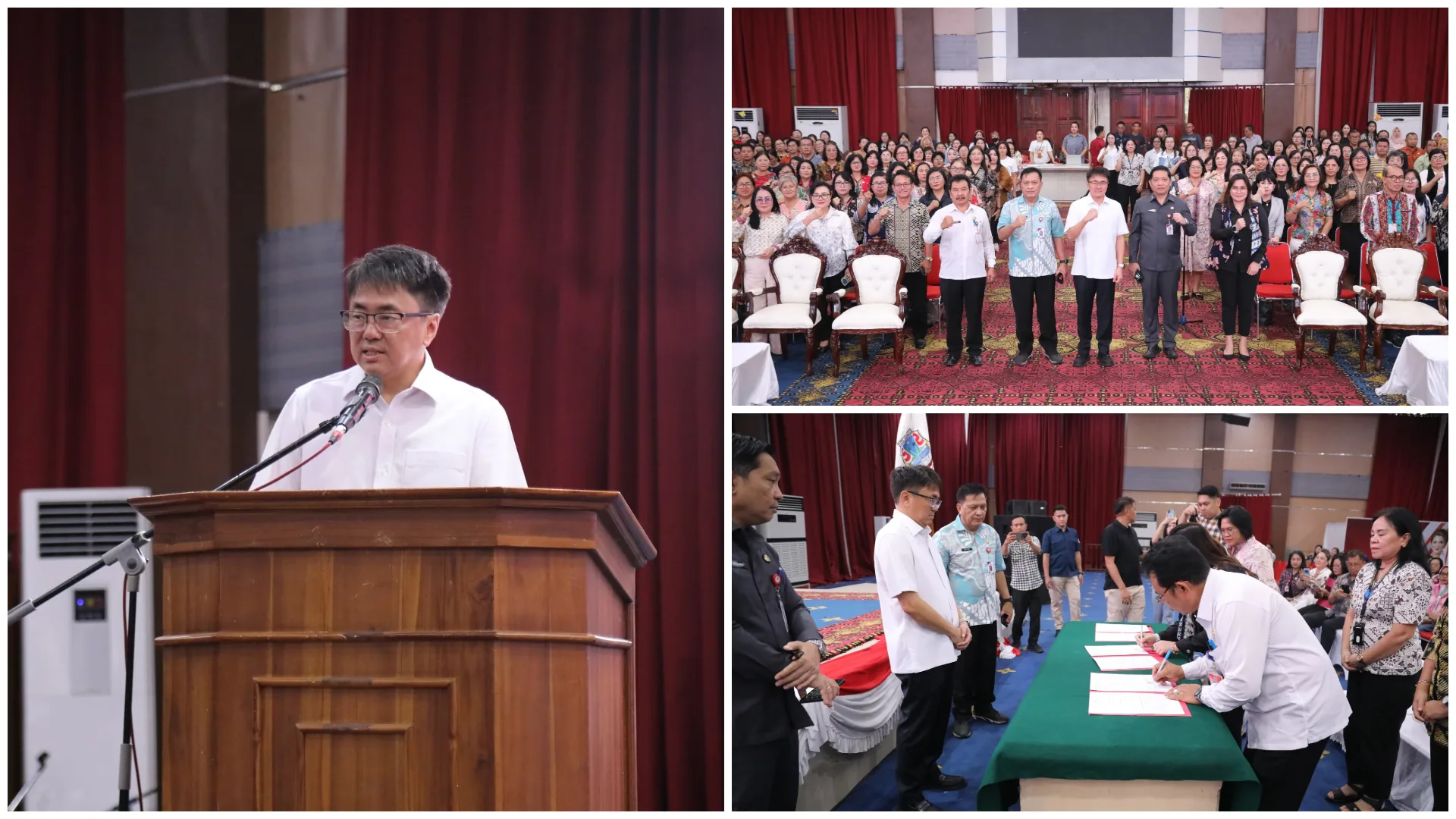 Usai memberikan sambutan, Andrei Angouw secara resmi membuka kegiatan tersebut dan menyaksikan penandatanganan pakta integritas oleh perwakilan kepala sekolah dan guru. Acara ditutup dengan sesi foto bersama. (Rik)