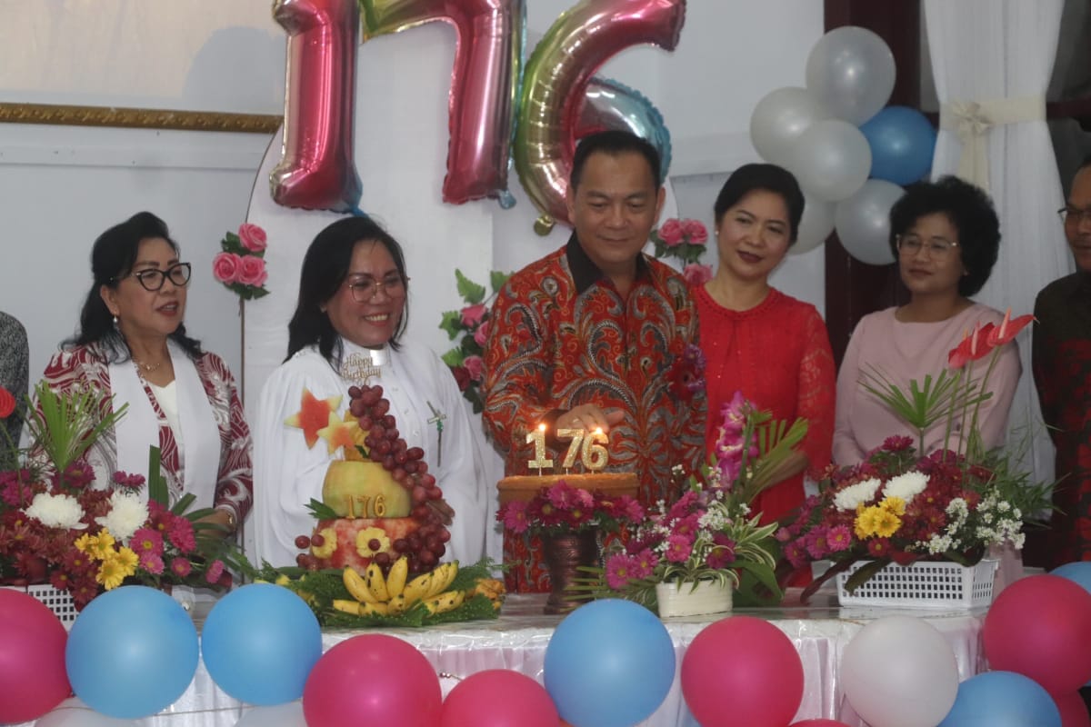 NusantaraInfo.net|| Wali Kota Tomohon Caroll Joram Azarias Senduk, S.H, bersama Ketua TP-PKK Kota Tomohon drg. Jeand’arc Senduk-Karundeng menghadiri ibadah Syukur Ibadah Syukur Hari Ulang Tahun Ke- 176 Jemaat GMIM Syaloom Tumatangtang