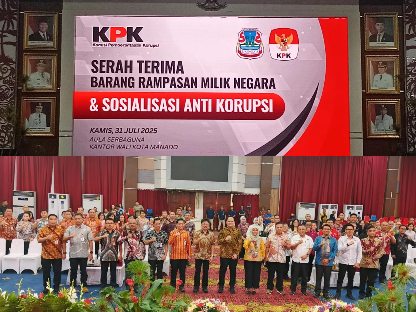 Manado, nusantarainfo.net – Wali Kota Manado, Andrei Angouw, menghadiri acara Serah Terima Barang Rampasan Milik Negara dan Sosialisasi Anti Korupsi yang digelar di Aula Serbaguna Kantor Wali Kota Manado, Kamis (31/7/2025). Kegiatan ini menjadi momentum penting dalam upaya penguatan tata kelola aset negara serta pencegahan tindak pidana korupsi di daerah.