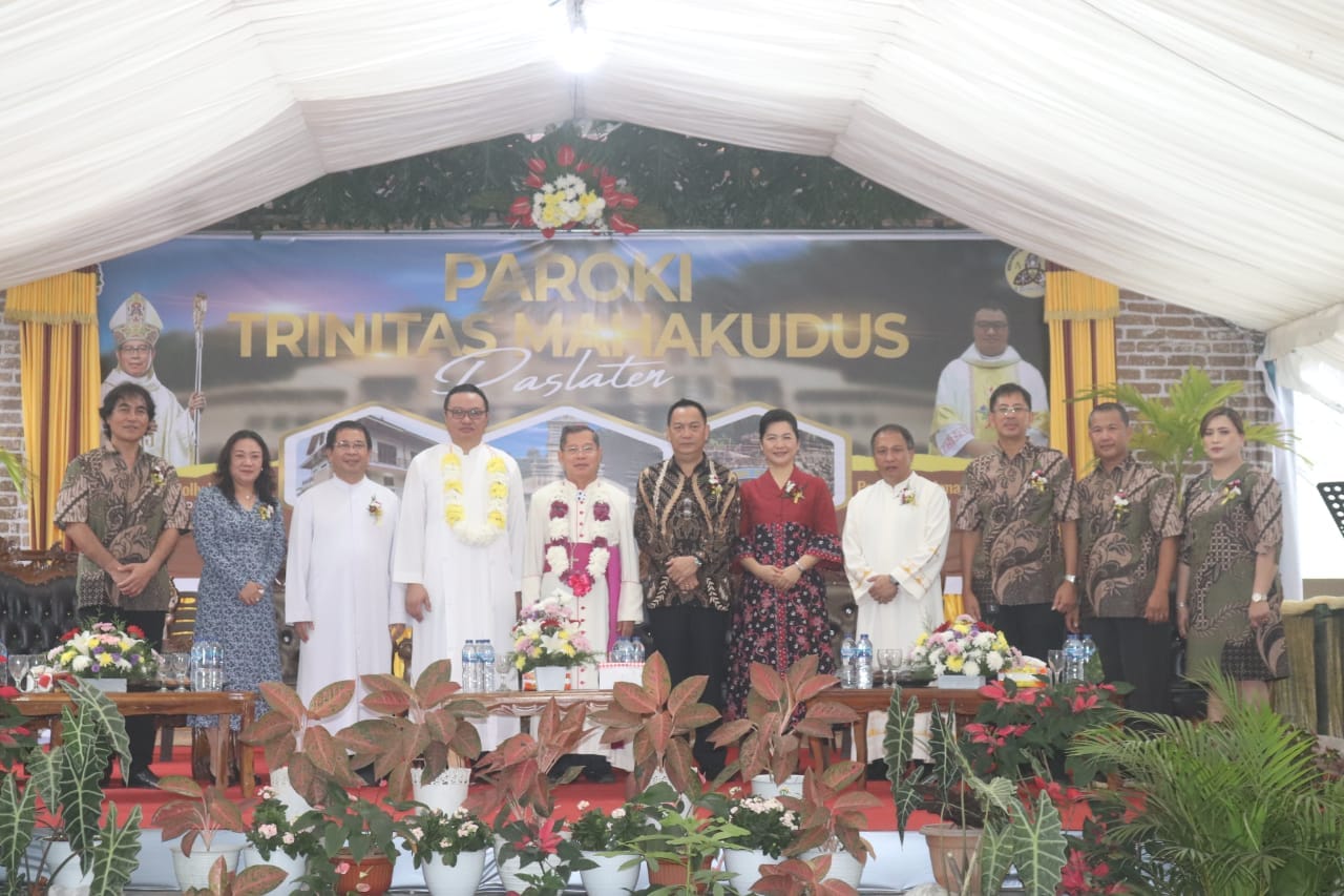 NusantaraInfo.net|| Wali Kota Tomohon Caroll Joram Azarias Senduk, S.H. didampingi istri tercinta Drg. Jean D’Arc Florentia Karundeng selaku Ketua TP – PKK Kota Tomohon menghadiri, Misa peresmian Paroki dan penyambutan Pastor Paroki Trinitas MahaKudus Paslaten yang baru bertempat di Kompleks Gereja Trinitas MahaKudus Paslaten. Minggu, (19/2/2023).
