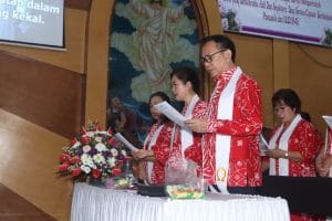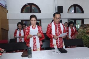 Jajaran Pemerintah Kota Tomohon, melaksanakan ibadah Paskah bersama Wali Kota Caroll Senduk SH, bertempat di GMIM Kakaskasen PNIEL, Minggu (31/03/2024). Khadim dalam ibadah ini Ketua Jemaat GMIM Kakaskasen PNIEL PdtnJulien Sagay- Karwur STh, selaku Ketua BMPW Wilayah Kakaskasen. Sementara sambutan PGI dibacakan oleh Ketua TP-PKK Kota Tomohon drg Jeand’arc Senduk-Karundeng.