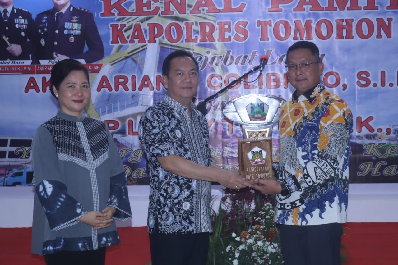 Dikesempatan teresebut, Wali Kota mengatakan saya beserta seluruh masyarakat dan jajaran pemerintah kota tomohon, mengucapkan terima kasih dan penghargaan yang setinggi-tingginya kepada AKBP. Arian Primadanu Colibrito, S.I.K., M.H, yang telah berhasil menunjukan kinerja yang luar biasa dalam menjaga situasi kamtibmas, mengayomi masyarakat, menjaga senergitas di kota tomohon, Selamat melanjutkan tugas dan pengabdian di tempat yang baru.