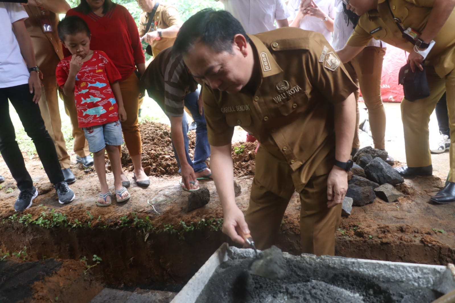 NusantaraInfo.net|| Wali Kota Tomohon Caroll Joram Azarias Senduk, S.H. menghadiri kegiatan Peletakan Batu Pertama Bantuan Stimulan Perumahan Swadaya (Bedah Rumah) Tahun 2022 Pemerintah Kota Tomohon, di Kelurahan Pangolombian, Selasa 22/11/2022.