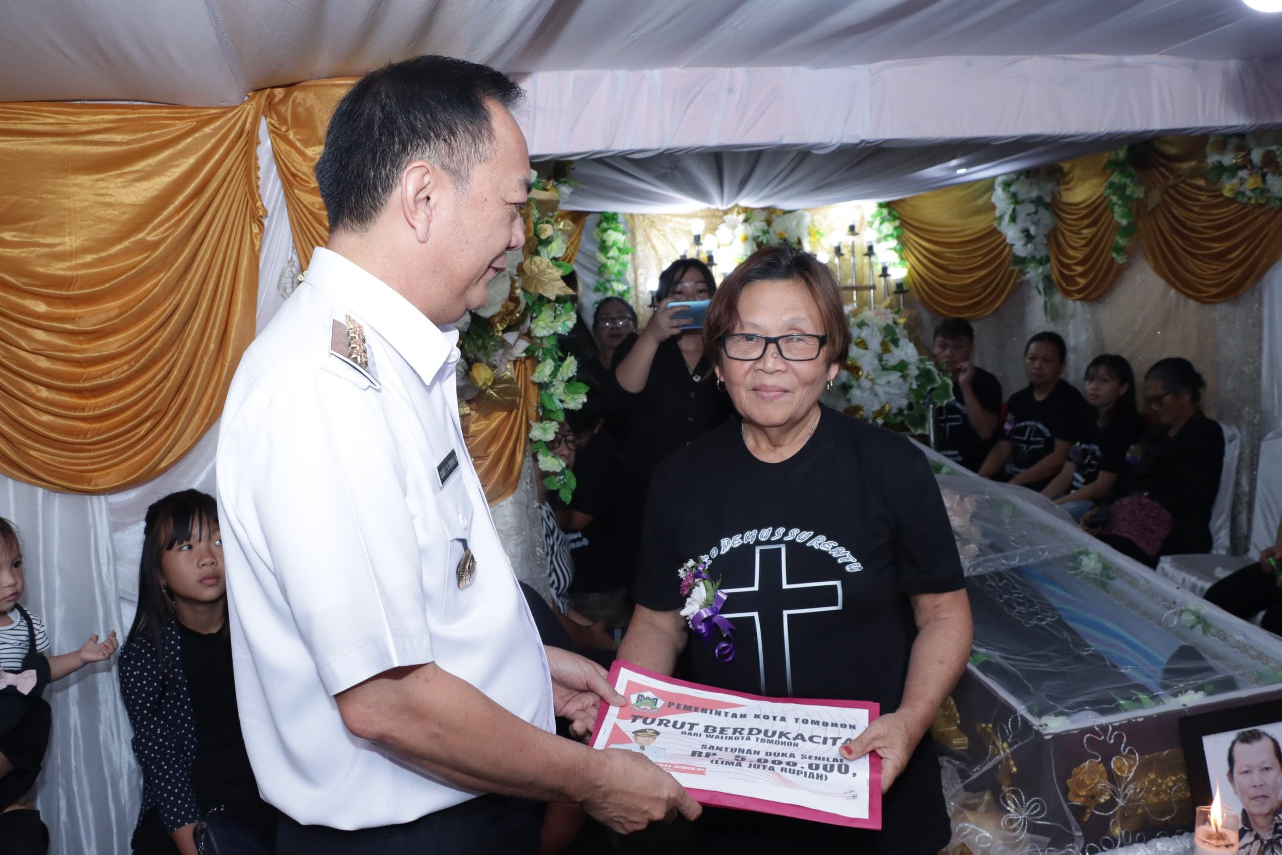 “Atas nama Pemerintah Kota Tomohon, atas nama masyarakat Kota Tomohon, Secara pribadi dan keluarga, menyampaikan turut berduka cita yang mendalam,” ujarnya.