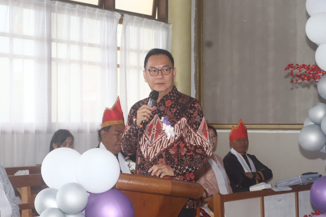 NusantaraInfo.net || Walikota Tomohon Caroll Joram Azarias Senduk, S H. didampingi Ketua TP-PKK Kota Tomohon Ibu drg. Jeand’arc Senduk-Karundeng menghadiri Ibadah Syukur HUT Ke- 5 Jemaat GMIM Wilken Paslaten Wilayah Tomohon Lima, Minggu 2 Februari 2025