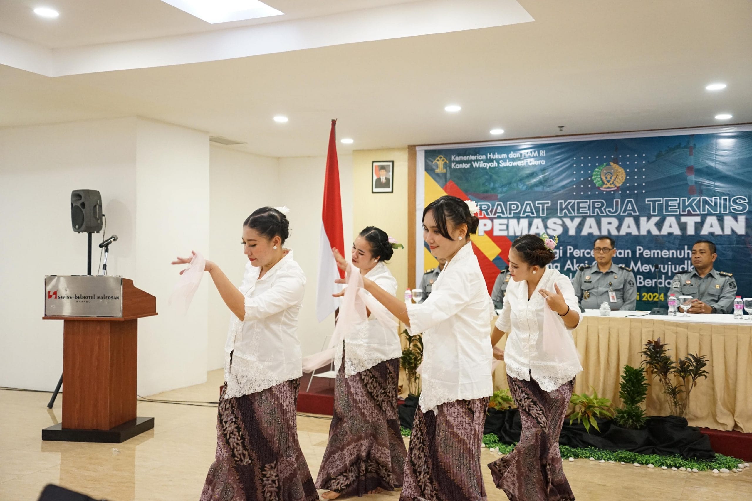 NusantaraInfo.net|| Warga Binaan Lembaga Pemasyarakatan (Lapas) Perempuan Kelas IIB Manado berhasil mencuri perhatian dengan penampilan mereka yang memukau saat membawakan Tarian Lenso. Selasa (21/05), Acara ini merupakan bagian dari pembukaan kegiatan Rapat Kerja Teknis Pemasyarakatan Wilayah Sulawesi Utara Tahun 2024 di Ballroom Hotel SwissBell Maleosan Manado.